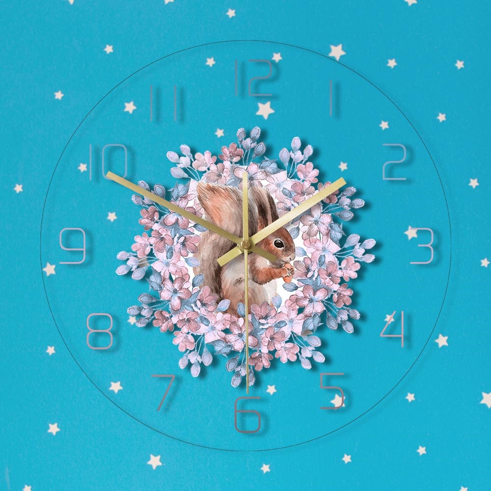 Skab en hyggelig atmosfære med et Dekorativt vægur med egern og blomster