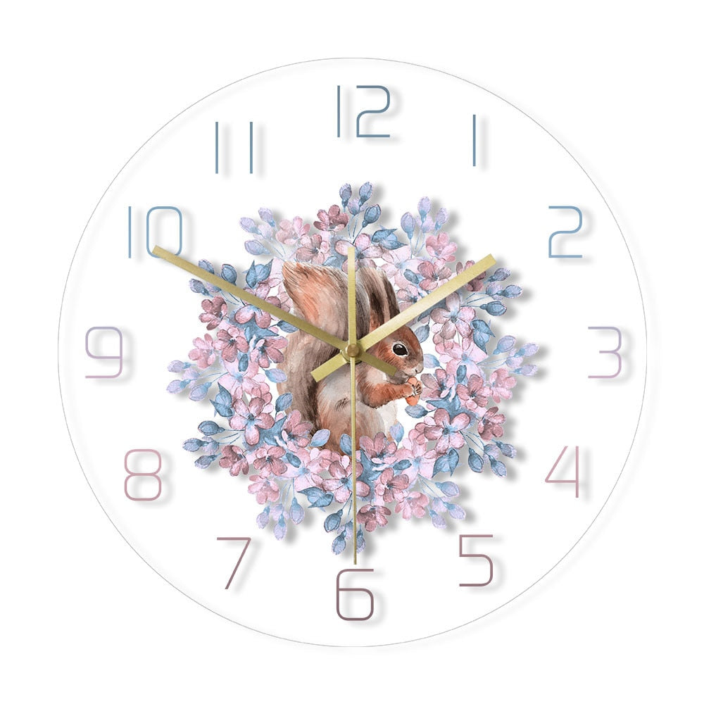 Giv dit hjem et strejf af naturens skønhed med dette Dekorativt vægur med egern og blomster.
