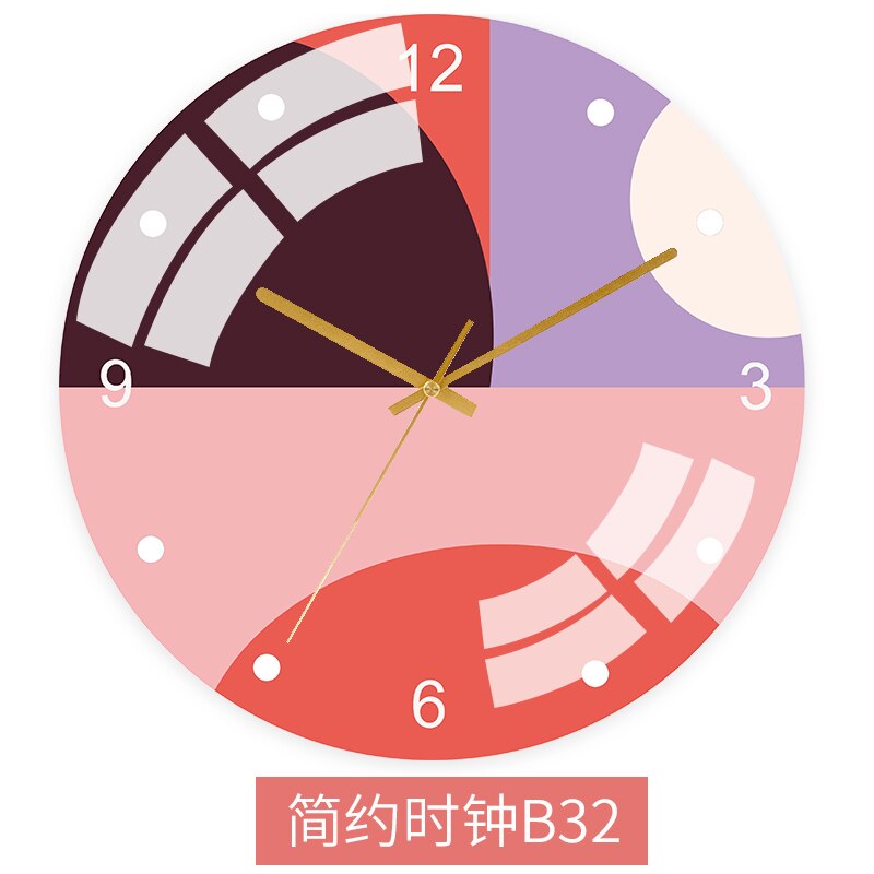 Dette vægur skiller sig ud med sit moderne, abstrakte design, der blander geometriske former og levende farver i en harmonisk komposition. De tydelige tal ved 3, 6, 9 og 12 og de enkle prikker for de øvrige timer gør det let at aflæse tiden, samtidig med at urets æstetiske appel bevares. De gyldne visere tilføjer et touch af elegance, der smukt komplementerer farvepaletten. Det er mere end bare et praktisk tidsmål – det er en daglig påmindelse om skønhed og originalitet, designet til at passe perfekt ind i et moderne hjem.
