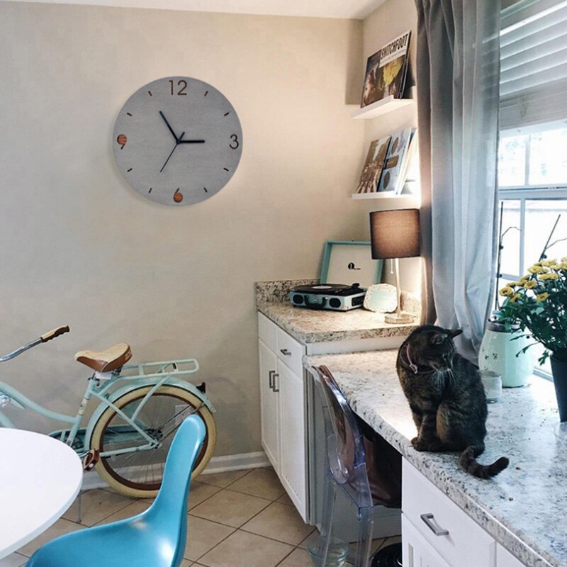 Hvordan passer dette grå vægur i betonlook med træ ind i dit hjem?