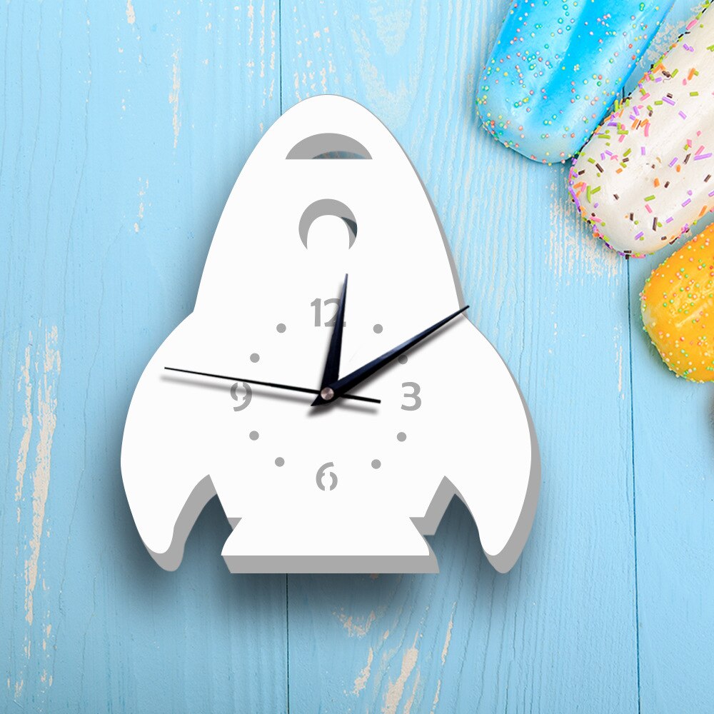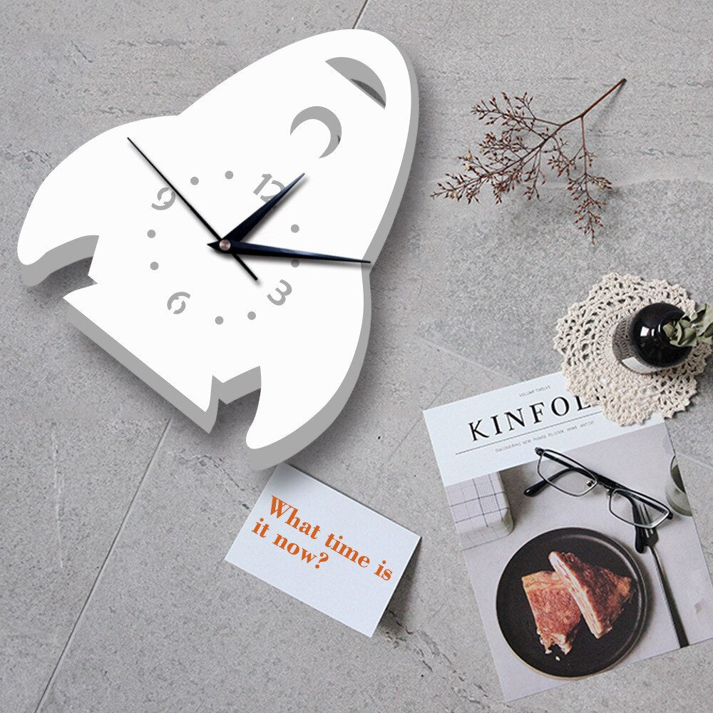 Hvidt vægur formet som raket: Tag en tur ud i rummet fra dit hjem!