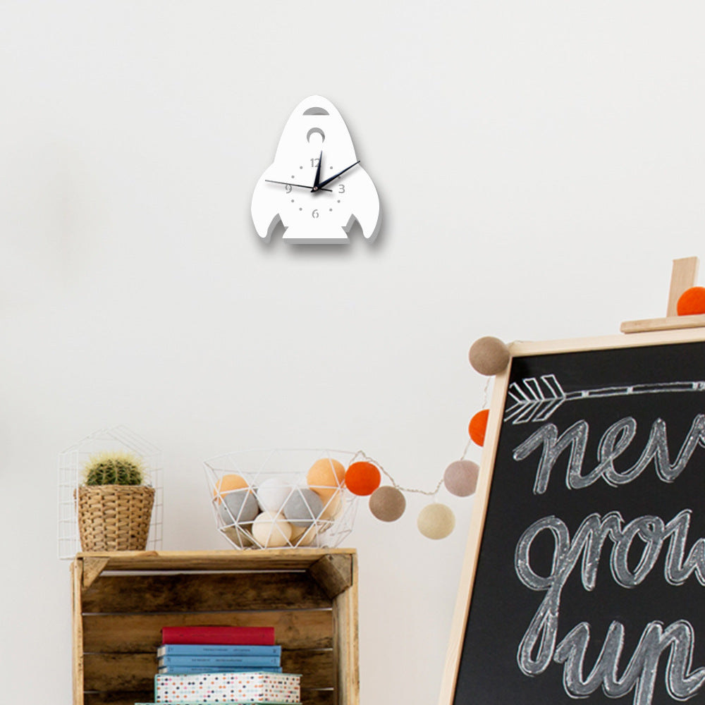 Giv dit hjem et strejf af eventyr med dette Hvidt vægur formet som raket, der inviterer til drømme om stjerner og fjerne galakser.