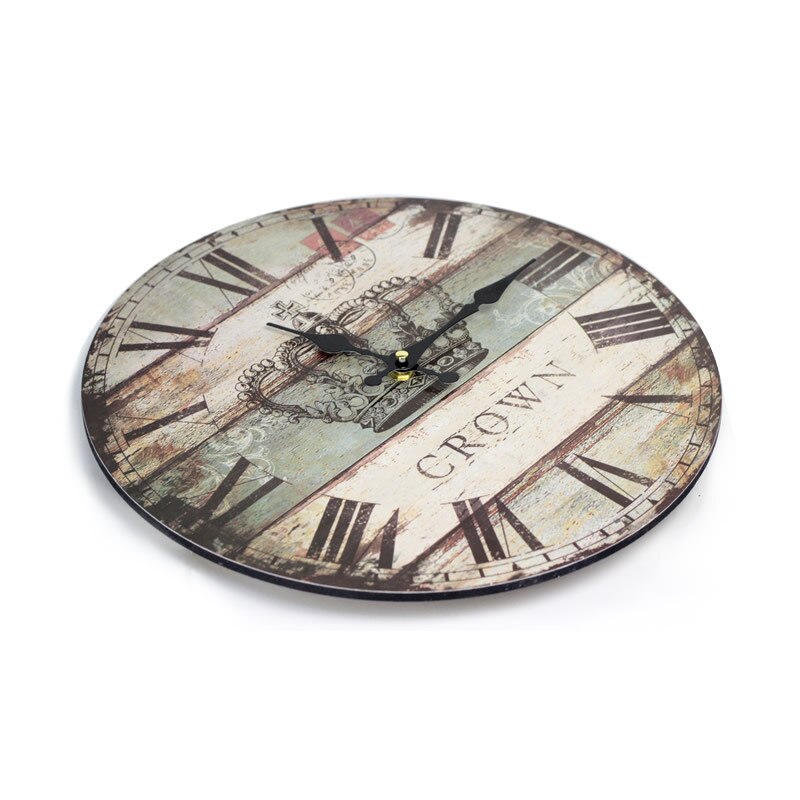 Tilfør et strejf af tidløs skønhed og karakter til dit hjem med dette smukke retro vægur i træ med krone.