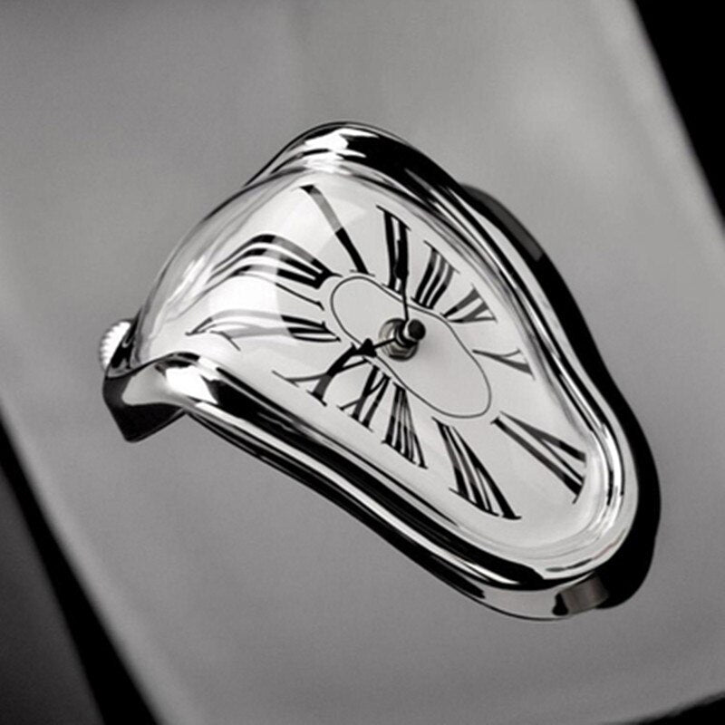 Dette ur er designet til at give et uventet og kunstnerisk touch til ethvert rum. Forestil dig det på kanten af din bogreol, diskret bøjet nedad, eller elegant placeret på dit skrivebord, hvor det trodser tyngdekraften og de traditionelle opfattelser af tid. Det skinnende, krom-lignende stel og den tydelige urskive med romertal tilføjer et klassisk element til det ellers surrealistiske design, hvilket skaber en fascinerende kontrast. Det er den perfekte måde at udtrykke din personlige stil på og vise din værdsættelse af den kunstneriske frihed, Dalí repræsenterede.