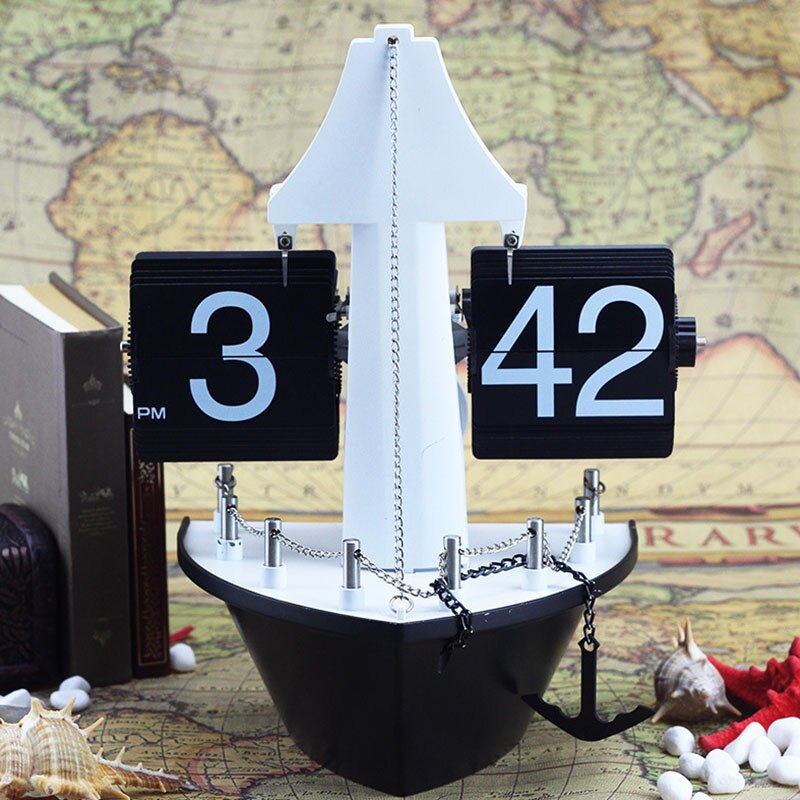 Vores flip ur i båd design er skabt med sans for detalje og en dyb kærlighed til havet. Hvert element er nøje udvalgt for at give dig en følelse af ro og eventyr. Se, hvordan de store, tydelige tal blidt skifter, sekund for sekund, og skaber en beroligende visuel oplevelse. Det er mere end bare et ur; det er en daglig påmindelse om friheden på åbent hav og skønheden ved maritimt håndværk. Placer det på en hylde, et skrivebord eller et natbord, og lad dets tilstedeværelse forvandle rummet til en lille oase af kystnær ro.