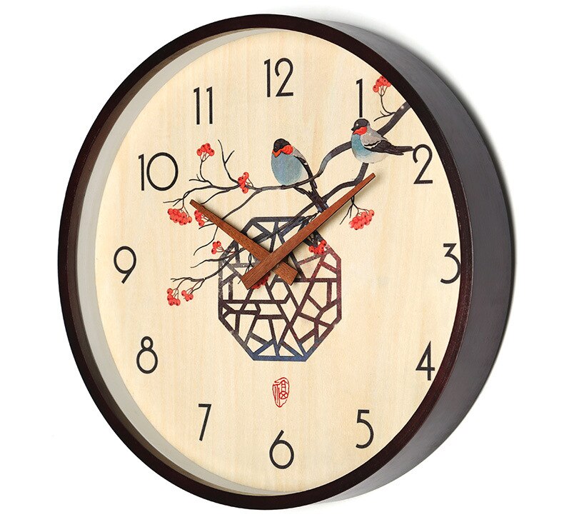 Dette vægur skiller sig ud med sit smukke og tidløse design. Selve uret er lavet af ægte træ, hvilket giver en robust og autentisk følelse. Træets naturlige årer skinner igennem og bidrager til urets charme. Motivet med bambus er ikke bare et print; det er et omhyggeligt udført design, der fanger bambussens elegance og styrke. Den lille gule og sorte fugl, der sidder på en bambusgren, tilføjer et levende og charmerende element. Visertælleren er tydelig og let at aflæse, og de sorte tal står smukt mod den lyse træbaggrund. Dette ur er perfekt til dig, der sætter pris på æstetik og kvalitet, og som ønsker et ur, der både er funktionelt og dekorativt.