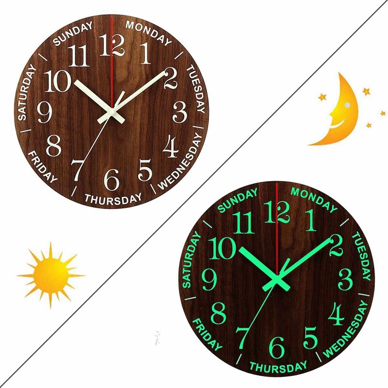 Træt af kedelige ure, der bare viser tiden? Vores unikke vægur i træ med ugedage giver dig mere end bare klokkeslæt. Det er et statement piece, der tilføjer varme og karakter til ethvert rum. Forestil dig, hvordan dette smukke ur i mørkt træ med tydelige, lysende tal vil fange blikket i din stue, dit køkken eller på kontoret. Det er ikke bare praktisk; det er en samtalestarter, der byder hverdagen velkommen med et smil og en klar visning af både tid og dag. Glem alt om at miste overblikket – med "Vægur i træ med ugedage" får du et smukt og funktionelt element, der komplementerer din indretning og forenkler din hverdag.