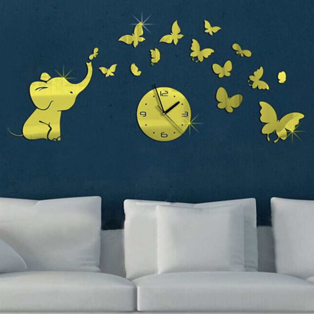 Omdan dit hjem med et Vægur klistermærke med elefant sommerfugle