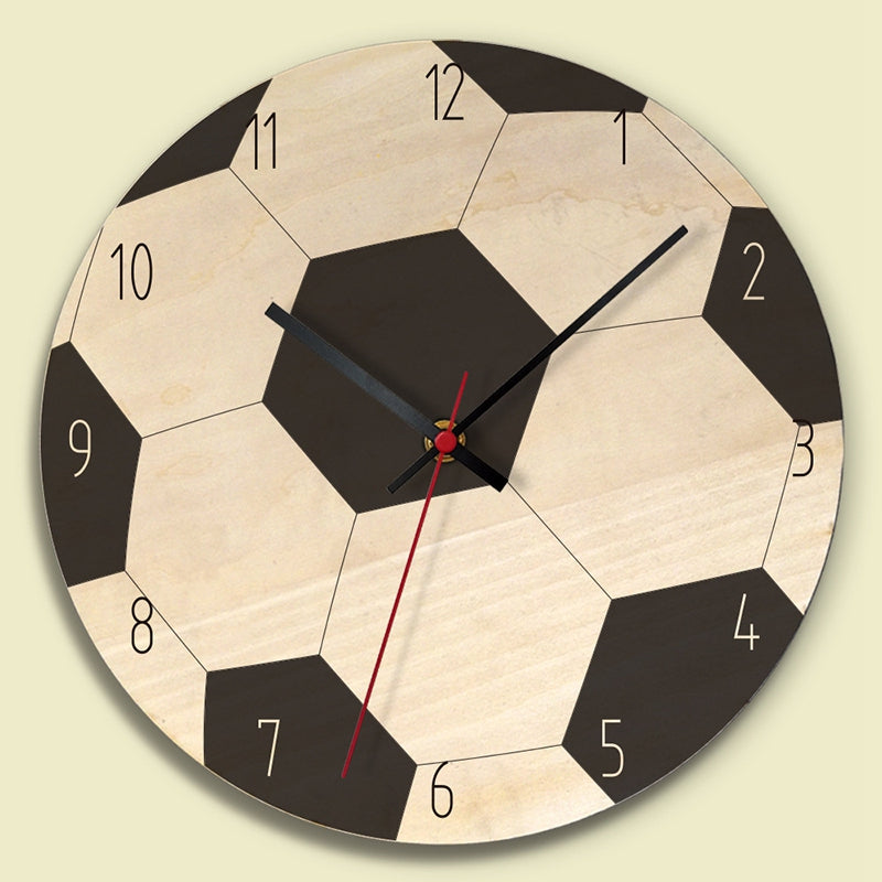 Dette vægur skiller sig ud med sit autentiske fodbolddesign. De klassiske sorte og hvide polygoner giver uret et dynamisk og genkendeligt udtryk, der med det samme fanger øjet. Tallene er tydelige og letlæselige, hvilket gør det nemt for børn at lære klokken og holde styr på tiden til fodboldtræning eller legetid. Uret er lavet af et lyst træmateriale, der giver det en naturlig og varm følelse, og de sorte detaljer skaber en fin kontrast. Det røde sekundviser tilføjer et lille, energisk farvepust, der minder om intensiteten på fodboldbanen. Dette vægur til børneværelse med fodbold er robust og bygget til at holde, selv i et aktivt børneværelse.
