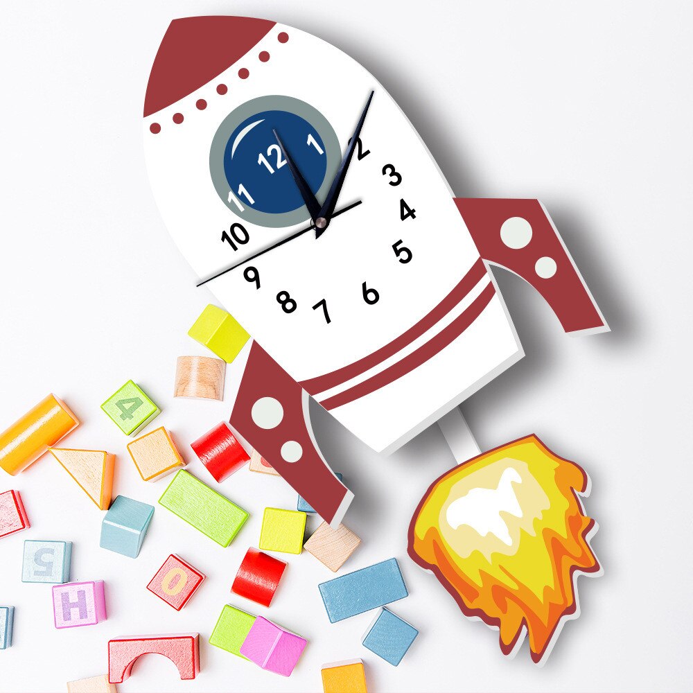 Dette vægur til børneværelset med raket er klar til at skabe glæde og læring i hjemmet.