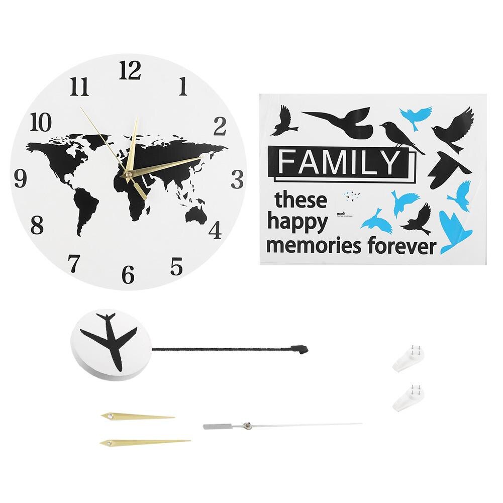 Drøm dig væk med dette Verdenskort vægur med fly pendul