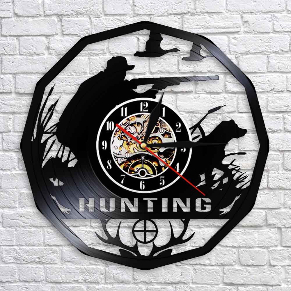 Giv dit hjem karakter med dette smukke Vinyl ur med jæger og hund.