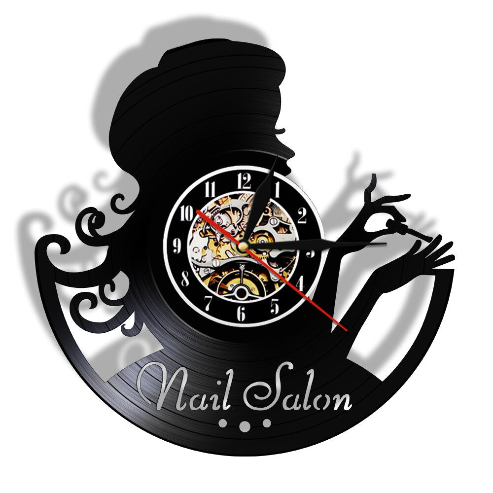 Gør din neglesalon uforglemmelig med dette Vinylplade ur til neglesalon dekoration.